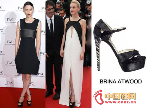 Carey Mulligan 穿Brian Atwood 凉鞋亮相2013戛纳电影节的首映式。戛纳电影节一直是黑色和白色的节日。她的黑色礼服非常优雅,但是在红地毯上看起来有些无聊。Rooney Mara 穿着Brian Atwood 凉鞋亮相戛纳电影节。这款鞋来自2013春季系列,带有黑色缎,扣带和黑缎的缰绳。Rooney Mara似乎演绎着哥特式的优雅,波尔多黑唇和高高的发髻显得非常精神。