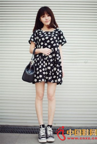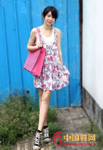 浪漫的印花,是今夏最流行元素,民族风的印花很是时髦好看,内搭上白色的背心让MM们看起来很是小巧玲珑,搭配上黑色的高帮帆布鞋,就很好看哦。