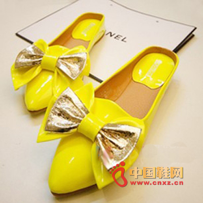韩国学院派尖头鞋,很清凉的鞋款。荧光黄色系,看起来就非常清爽!鞋面上的金色的蝴蝶结设计很显质感,既时尚又美观。搭配短裤和裙子都有很不错的效果哦,可以靓靓的出街咯!