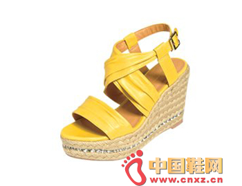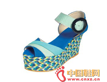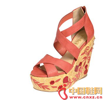 厚底坡跟凉鞋,鞋跟上的闪片、刺绣,这些精致的细节都别具匠心。