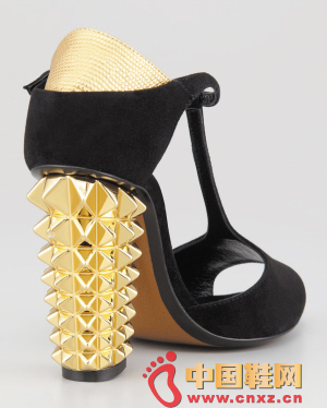 Fendi黑色与金色拼接高跟鞋,铆钉装饰的后跟充满了存在感,是重要场合的利器。