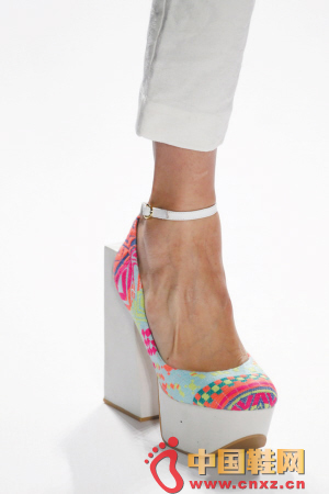 Custo Barcelona春夏秀场,粗跟充满了建筑感,与纤细的踝带形成了鲜明对比。