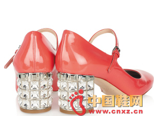 除了铆钉,闪闪发光的水钻也是贴在鞋跟上的好元素,与粉红色的Miu Miu搭配,是童话里的可爱女郎。