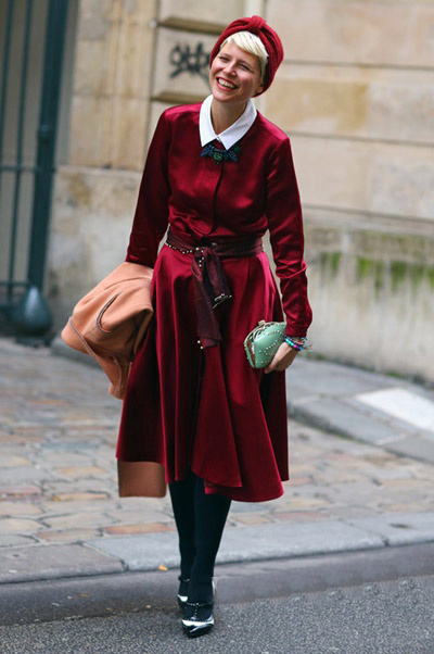 不论春夏还是秋冬季的T台秀场,还是潮人街拍中,你总能看到袜子陪高跟鞋或是凉鞋的搭配,这种颇具争议的穿法却很受欢迎。个性鲜明的铆钉中跟鞋与绿袜红裙的搭配,让复古风情再一次成为不容你忽视的热门潮流,让60年代风格展现出多元而诱人的魅力。