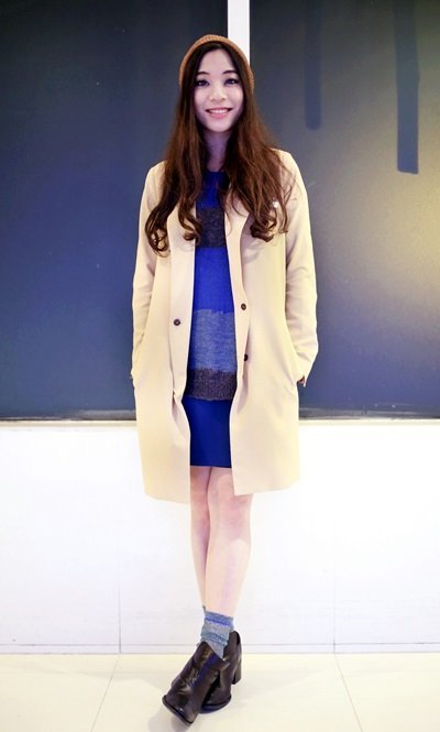 也不妨挑战一下OL式裙装搭配平底短靴带来的出其不意的率性混搭来吸引眼球吧。鞋子的黑蓝色拼接正好映衬了衣服的色彩很和谐,英伦的古朴小细节是不是很惹人喜爱?
