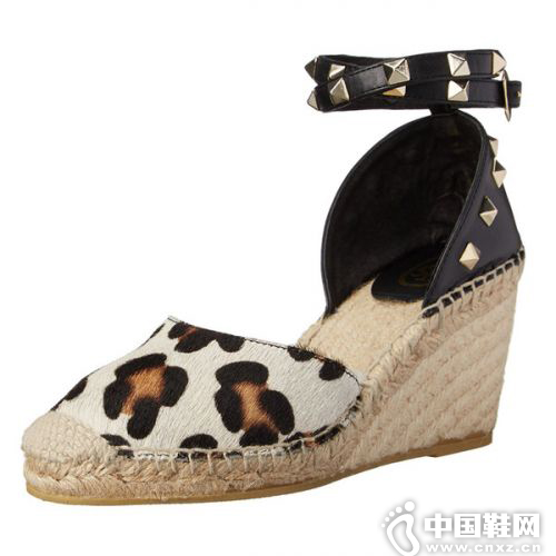 Ash艾熙Winnie系列高跟凉鞋集三大时尚元素与一体,搭配精致个性,毫无违和感!舒适楔形造型,前面设计有防水台,拉长腿形的同时,舒适好穿。渔夫鞋标志性草编鞋底又不失休闲,搭配上鞋面上时尚豹纹和硬朗铆钉,整体造型设计感十足,休闲不平庸!(中国鞋网-最权威最专业的鞋业资讯中心。合作媒体:宝贝丫童鞋)