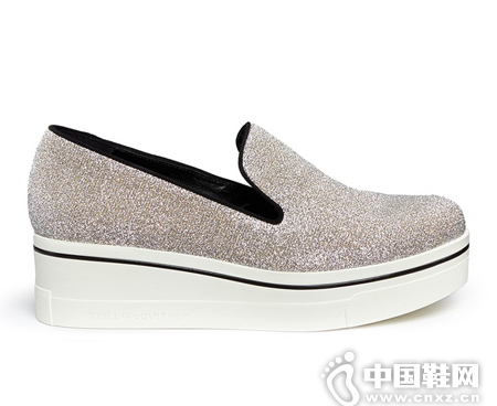 STELLA MCCARTNEY 闪粉厚底便鞋,采用大气的厚底设计,能修饰腿线,同时穿着舒适,银色闪粉表面搭配隐约的金色底层显得格外耀眼,让您轻松成为街头焦点。