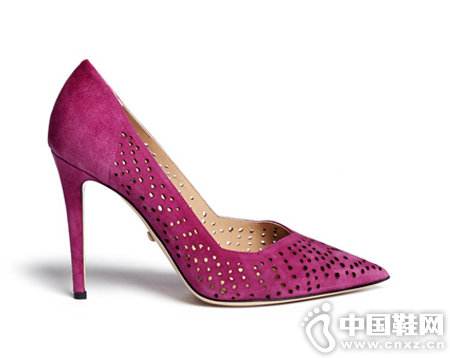 DIANE VON FURSTENBERG 尖头镂空麂皮高跟鞋,紫红色麂皮搭配精美的镂空鞋面,衬托出风情万种的女人味,流畅的鞋型将双足包裹得恰到好处,是裙装造型的搭配首选,让您尽展摩登女性的独特风采。