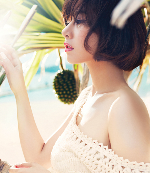 【中国鞋网-名人图库】正在出演新剧《丑闻》的韩国女星赵允熙,日前公开一组在日本冲绳拍摄的写真。以清新大自然为背景,身着镂空装露香肩美胸,秀清新自然风。