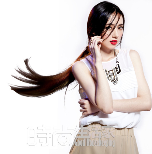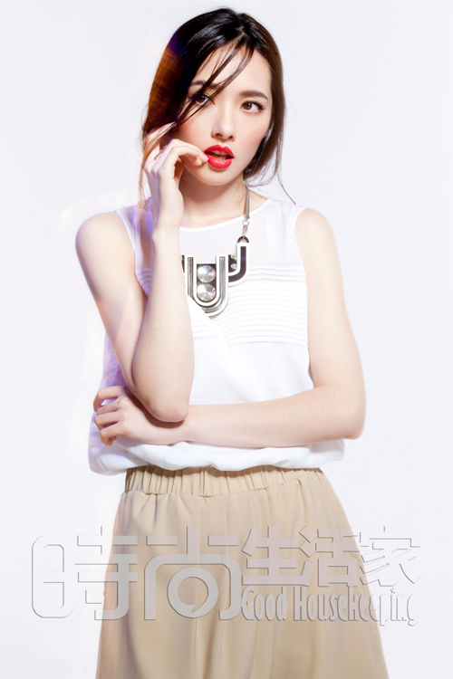 【中国鞋网-名人图库】近日,新晋女神郭碧婷曝光一组某杂志写真大片。片中的碧婷高腰红色工装裤、黑色上衣、金属流苏飞转,营造出女神恬静外表下不可忽略的女王范儿。(合作媒体:)