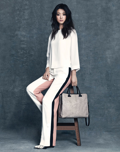 【中国鞋网-名人图库】韩国演员全智贤携手代言的时尚品牌拍摄杂志写真,着干练大气为主的时尚装,搭配经典包包,彰显了时尚女人的精英气质。(合作媒体:)