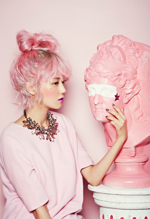 【中国鞋网-名人图库】4minute成员许嘉允化身童话中的好奇少女,再现梦幻少女的“粉色诱惑”。她以一头粉色长发亮相,表情独特,以粉色系打造童话氛围。 (合作媒体:)