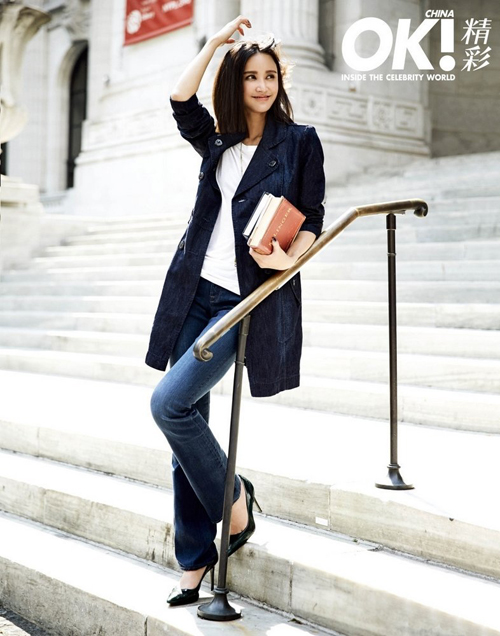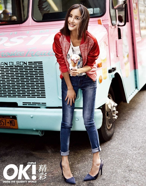 【中国鞋网-名人图库】张歆艺在纽约看秀的同时拍摄《OK!精彩》杂志大片。在纽约初秋的街头,张歆艺的直爽开朗的个人魅力与潮流时尚碰撞,凸显时髦,轻松,玩味。(合作媒体:)