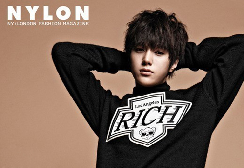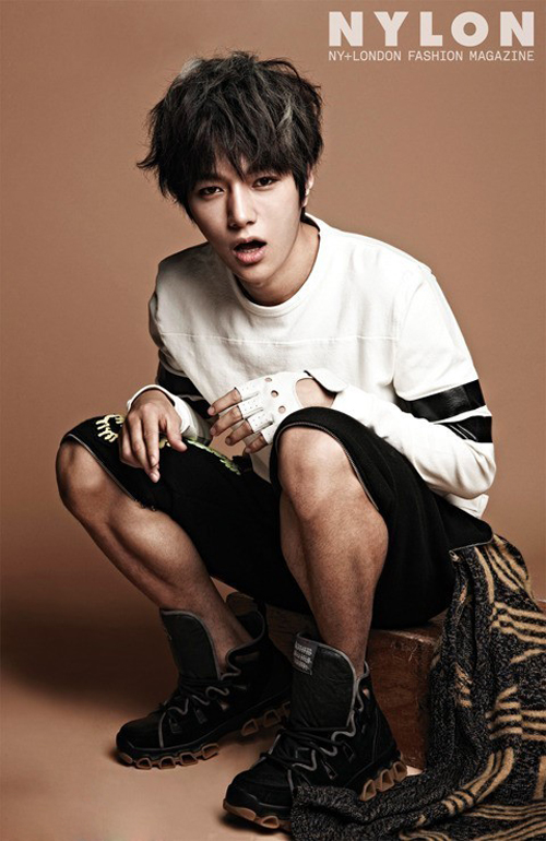 【中国鞋网-名人图库】INFINITE成员L为某杂志拍写真。大男孩装扮,凌乱略显慵懒的发型,俏皮的小动作,虽然流露些许稚嫩,却展露灼眼的青春朝气。(合作媒体:)