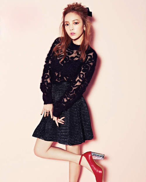 【中国鞋网-名人图库】KARA成员具荷拉日前携手某时尚杂志拍摄一组写真,身着带有蝴蝶结装饰的淑女装以魅惑眼神,展现了性感又惹人爱的少女面貌。(合作媒体:)