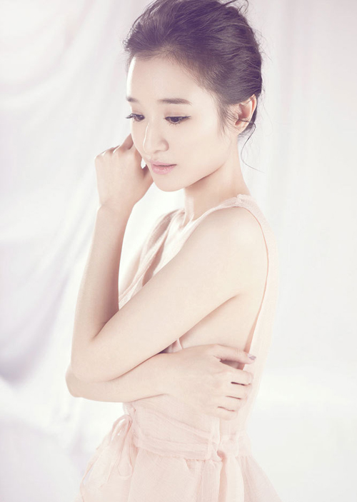 【中国鞋网-名人图库】日前,内地女星林好曝光纯美写真。白色如梦花的背景下,林好长发高盘,身着裸色连衣裙,眼神清澈,灯光下完美细腻的肌肤,晶莹如雪,纯美至极。(合作媒体:)