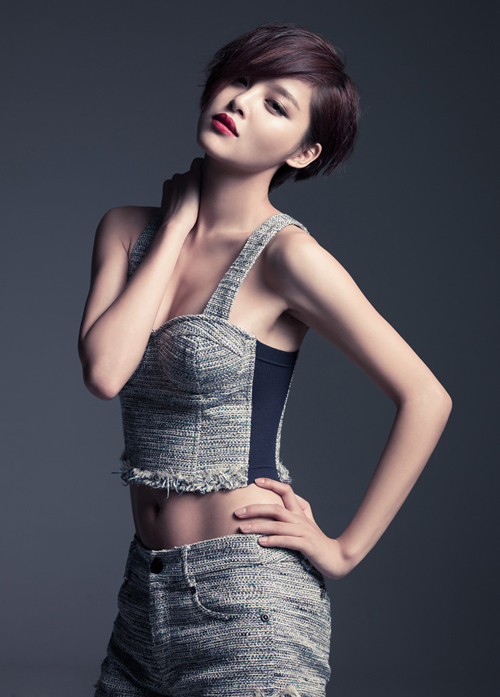 【中国鞋网-名人图库】近日,新晋实力花旦辛芷蕾曝光了一组短发性感写真,片中辛芷蕾身穿灰色亚麻紧身上衣、短裤,大秀“马甲线”和诱人长腿,尽显凹凸曲线腰身。(合作媒体:)