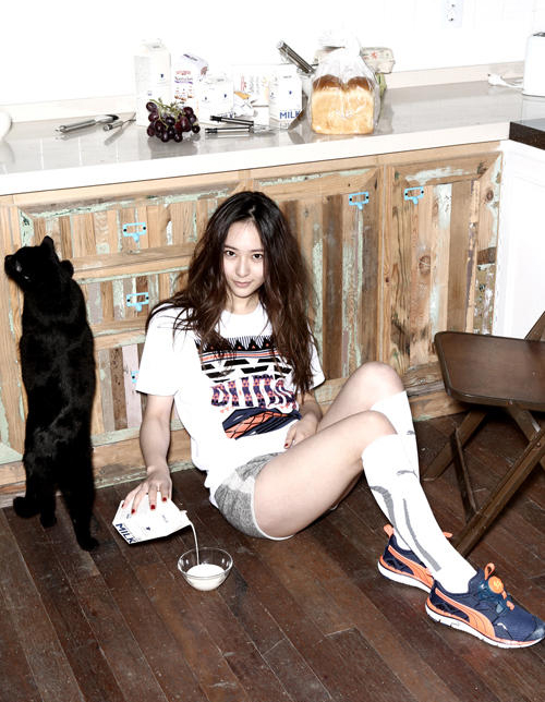 【中国鞋网-名人图库】韩国女子组合f(x)成员Krystal近日为其代言的运动品牌拍摄写真,身着宽松T恤和运动短裤搭配运动鞋,展现修长美腿。(合作媒体:)