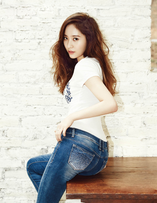 【中国鞋网-名人图库】韩国女生组合f(x)成员Krystal亮相时尚杂志《CeCi》,以简单白色T恤和牛仔裤展现青春气质。(合作媒体:)