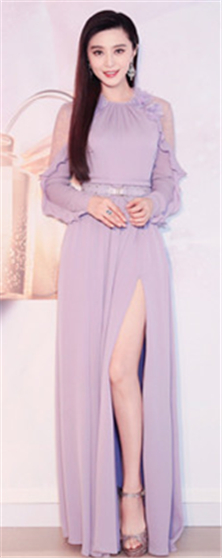 范冰冰淡紫色长裙造型亮相 颇显轻盈灵动之气