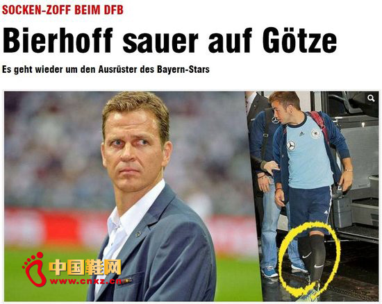 【中国鞋网-品牌动态】今年夏天,格策在加盟拜仁后的媒体见面会上,就因为错穿非拜仁赞助商T恤招致拜仁和俱乐部赞助商的不满,那次格策被俱乐部罚款2万欧元——显然这点钱对格策来说太不值得一提,那次风波之后格策又在国家队集训中穿上“挨罚品牌”的球袜,这让德国领队比埃尔霍夫挠头:“(他这么做)真是太烦人了!”
