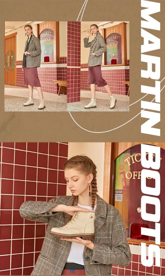 格纹衫叠穿皮衣工装裤和马丁靴,