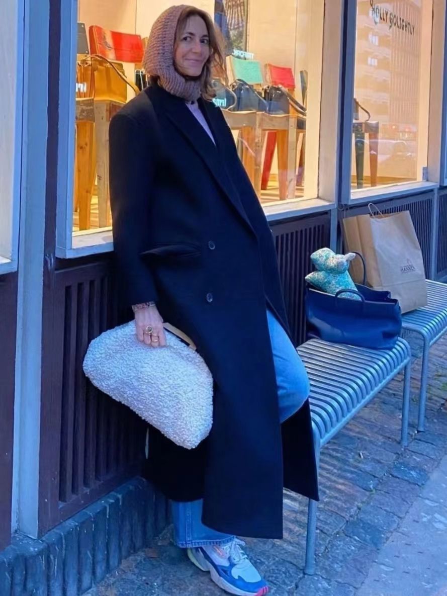 在此基础上,组合浅色衬衫、针织衫、深色西服或者卡其色风衣都没问题,不费劲又经典耐看的造型就这样完成了。