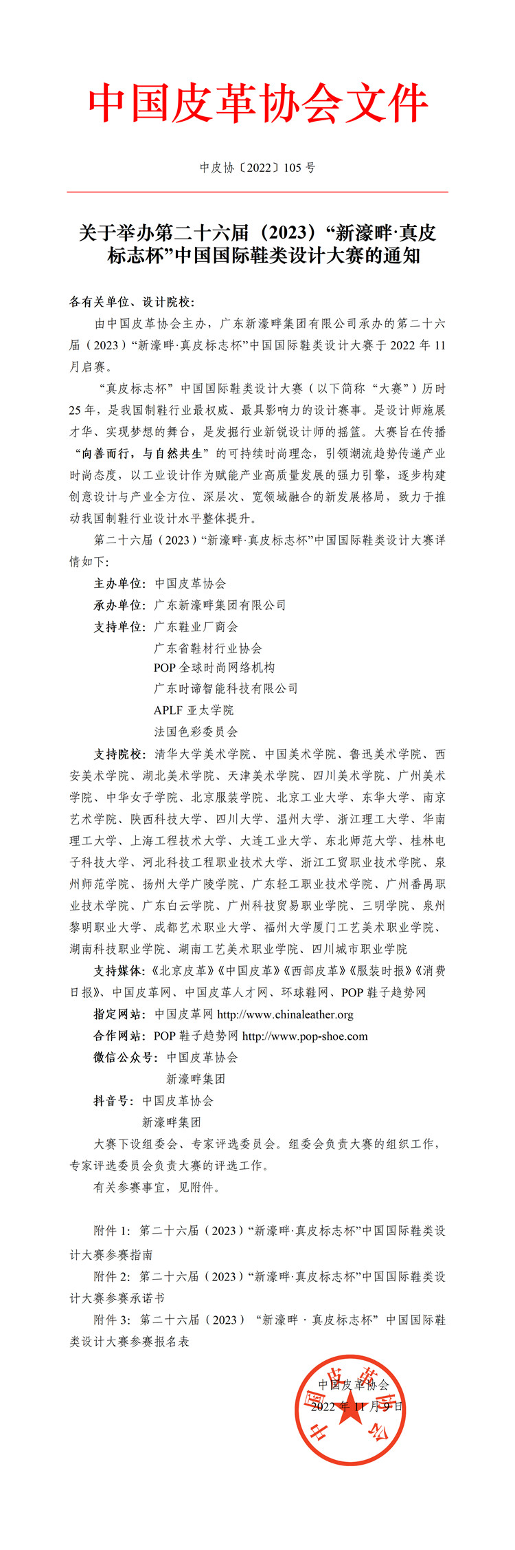 关于举办第二十六届(2023)“新濠畔·真皮标志杯”中国国际鞋类设计大赛的通知