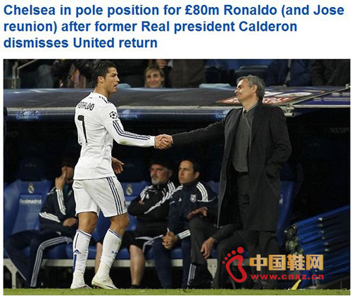 【中国鞋网-体坛快讯】“8000万英镑,切尔西处于收购C罗争夺战的杆位”,《每日邮报》近日带来消息,因为前皇马主席卡尔德隆否认了葡萄牙人重返曼联的可能性,而跟随穆里尼奥去斯坦福桥的前景则更被看好。