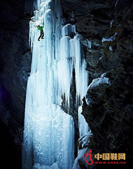 冒险运动摄影师雷·德姆斯基(Ray Demski)记录了这组惊险的照片。在这之前,他已经拍下了亚历克斯许多攀登场景下的矫健身姿,但这次他决定在夜晚进行拍摄,而此次的效果也证明是惊人的。他说:“这次在晚间拍摄给了我们另一个全新的视角,使得我能够控制好光线拍摄出冰层绝美的形状和颜色。”  (中国鞋网-最权威最专业的鞋业资讯中心)