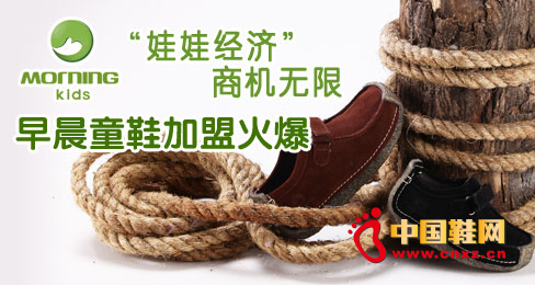 据统计,童鞋产品每年有近300亿的市场容量,投资前景不可忽视!选择早晨童鞋吧,千款差异化产品为您争得市场宠爱,以更了解消费需求、关注儿童健康的姿态赢得财富,难得机遇不容错过!(转载请注明来源中国鞋网 原创,本网保留追究盗用者版权责任的权利。合作媒体: