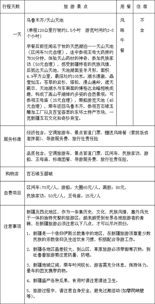 4、 乌鲁木齐天山天池地势较高,紫外线强烈,建议女士可佩戴帽子、墨镜、防晒霜等,高山紫外线强烈,可做好防晒措施;