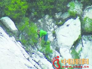 驴友爬野山被困500米高悬崖 身体紧贴峭壁