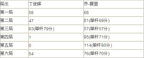 第 六局丁俊晖破釜沉舟开场32-0领先,其后卷土重来单杆拿下22分,母球走位出现问题,小晖勉强推红球不进,而且红球停在了袋口,送给了佩里大礼!佩里单 杆70分,70-54超出。此时台面只剩下粉球和黑球,丁俊晖做斯诺克未果,1-5不敌对手无缘16强,自2005年中国公开赛问鼎,小晖主场排名赛陷入 八年无冠魔咒。