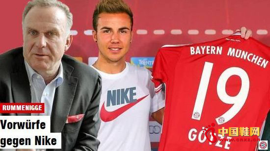 【中国鞋网-品牌动态】近日,拜仁新援格策、基希霍夫,以及想要离队的戈麦斯都惹上了麻烦,由于在拜仁的公开场合穿着非俱乐部指定赞助商的,三人被处以超过1万欧元的罚款,罚金全部由拜仁捐献给德国遭受水灾影响的地区支持灾后重建工作。人们本以为这件事情就到此为止,但拜仁CEO鲁梅尼格显然不打算就这么轻松解决这件事情。近日拜仁CEO鲁梅尼格公开指责公司,称该品牌授意球员们故意穿错衣服砸场子的行为是不公平竞争。鲁梅尼格还表示,以后不允许再发生这样的事情。