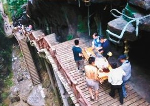 当日下午,金丝峡景区管委会工作人员告诉记者,山石滑塌点位于景区内九龙潭,滑塌范围约25米、10立方米左右。据现场一位目击者讲,事发时间大概在11时左右,当时不断有石头从山上滚落,砸中了一些路过的游客。“有的游客头部被砸受伤,其余游客出现擦伤,滚下来的石头还压塌了峡谷里边的悬空栈道。”