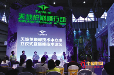 TOPLAND巅峰行动是依托天坡伦品牌精神和品牌价值观形成、新一轮的天坡伦品牌战略行动,天坡伦将依托这一战略行动,通过不断的、大力的品牌宣传,形成独特的品牌识别,以及品牌影响力。此外,昨天现场天坡伦品牌还正式组建了巅峰登山队和巅峰行动产品支持中心,主要目标是实现攀登活动的产品技术支持(并不断完善),同时,通过攀登活动中的产品检测、改善产品技术提升、提升产品运用功能。(中国鞋网-最权威最专业的鞋业资讯中心,合作媒体: )