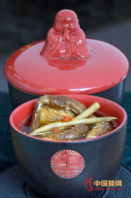 在伦敦的凯梅菲尔餐厅您可以享用,售价108英镑,世界上最值得品尝的“佛跳墙”,其中包括了鱼翅,鲍鱼,日本花蘑菇,海参,扇贝,鸡肉,湖南火腿、猪肉和人参等昂贵食材,就连素食主义者都抵挡不了它诱惑。而想品尝佛跳墙的顾客需要提前五日单独预订。(中国鞋网-最权威最专业的鞋业资讯中心)