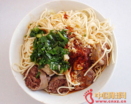 羊肠面汤色淡黄,肠段洁净,肥肠粉白,面条金黄,葱末浮上,萝卜丁沉在碗中,肠段细脆馅软,面条悠长爽口,夏天吃其凉爽劲道,冬日吃其热干暖胃,实属实惠之小吃。