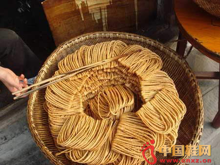 这种食物是用白面为原料,稍加盐和调料,搓成细条(越细说明手艺越好),一圈圈放入油中炸制而成,酥脆可口。