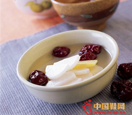 姜拌汤是白面和生姜(干姜也可以)搭配作成的。具体作法是:先将适量白面(根据需要定量)用少量水调拌后,搓成小颗粒状(不要成糊状),下到锅里(即开水锅),加些切碎的生姜和咸盐,熬滚约半小时即可食用。患风寒感冒,喝姜拌汤后,盖上感冒,喝姜拌汤后,盖上被子“潮汗”(发汗)后,病人就能烧退、鼻通、精神爽。(中国鞋网-最权威最专业的鞋业资讯中心)