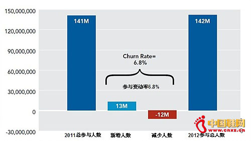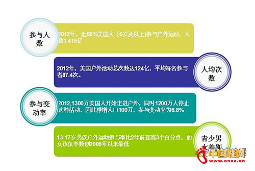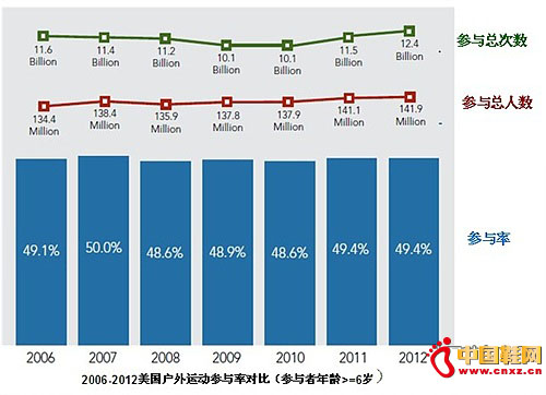 3.2012,1300万美国人开始走进户外,相反,1200万人停止了这种活动,因此净增人口100万,参与变动率为6.8%