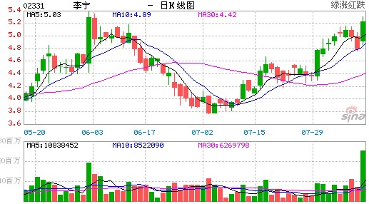 李宁昨股价高开逾2%后,高见5.3元,收报5.23元,升约9.18%,创两个多月以来新高,亦为本月来最大单日升幅。李宁昨获瑞银落力唱好,该行料,李宁销情将与安踏一样踏入复苏期,其风险回报率亦较安踏吸引,属该行内地运动用品股首选,故重申“买入”评级及目标价7.2元不变。