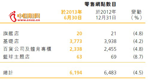 报告期内,匹克零售网点数目为6194个,较2012年底减少289个。公告表示公司会继续开设更多大面积零售网点及关闭面积较小、效率较低的店。(中国鞋网-最权威最专业的鞋业资讯中心,合作媒体: )