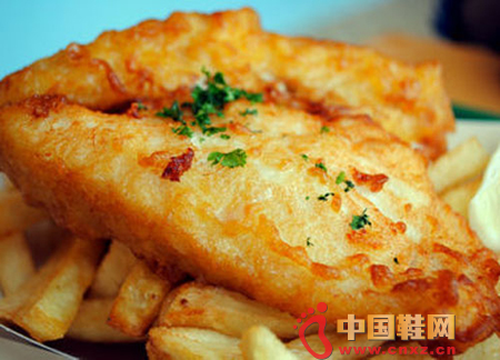 长期以来,炸鱼薯条一直是英国最流行的外卖食品。全境有1.1万多家炸鱼薯条店,这道快餐每年大约能卖出2.55亿份。这一传统美食是将鱼(一般是鳕鱼和黑线鳕)两面裹粉后煎炸,再配上比美式薯条更加粗厚的英式薯条。进餐时的传统配料包括盐、醋、番茄酱或蛋黄酱沙司以及豌豆糊。如果沿着英国海岸旅行,炸鱼薯条堪称经典的海滨晚餐。