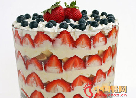 英式查佛(Trifle),象布丁一样,是英国的传统甜品,通常由水果,蛋糕或是饼干,custard,奶油一层一层做成,层层叠叠就是Trifle的最大特点,此外,用甜酒比如雪利酒淋泡过的蛋糕或是手指饼,也是Trifle的独特之处。水果的清甜加上美酒的香醇,算是非常独特的甜品。除了那些英国人离不开的烤豆、鱼和炸薯条外,英式香肠外,这个很英式的Trifle算是英国人最离不开的甜点了。