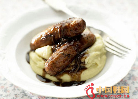 这道菜的特点是非常管饱。但不像鱼和薯条那样细腻。几乎所有的英国酒吧都会做这道菜。价钱5-10英镑不等。品尝这道菜的最佳地点是湖区和布莱顿。因为前者以香肠出名,而后者以土豆泥出名。(中国鞋网-最权威最专业的鞋业资讯中心)