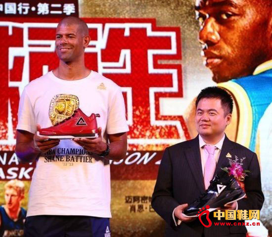 【中国鞋网-品牌动态】8月27日,中国领先的专业全新推出的三款战靴新鲜出炉。在“2013匹克NBA球星中国行第二季”的发布会现场,连续两年夺得NBA总冠军的“蝙蝠侠”肖恩-巴蒂尔、姚明在休斯顿火箭队的队友“神鸟”兰德里携手匹克体育CEO许志华,现场揭开了巴蒂尔8代、NBA明星前锋战靴“飓风二代”和后卫款“闪电二代”三大鞋款的神秘面纱。