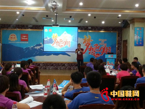 【中国鞋网-品牌动态】北京时间2013年8月27日,“梦想飞翔——2013秋冬零售训练营”在山东济南开课。本次训练营为期三天,从27日至29日,天伦天户外零售管理中心经理高顺南、来自全国各地的50多位销售精英及数位精英训练讲师参与了本次训练营。