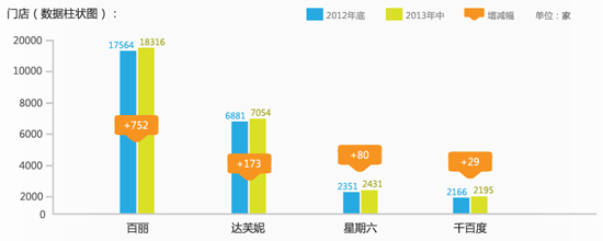 除了增长回落,百丽上半年店铺拓展也比前两三年有明显回落。中报显示,百丽上半年大陆鞋类店铺净增加442家;运动服饰类门店净增310家,而2010年-2012年,每年净增店数目都在 1500-2000家。